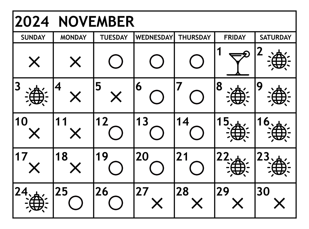 2024年 11月の営業予定日です。