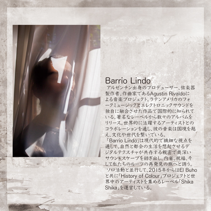 「Barrio Lindo」は現代的で繊細な視点を通して、自然と都会の生活を想起させるデジタルテクスチャが共存する親密で奥深いサウンドスケープを紡ぎ出し、内省、祝福、そして私たちのルーツの再発見の旅へと誘う。