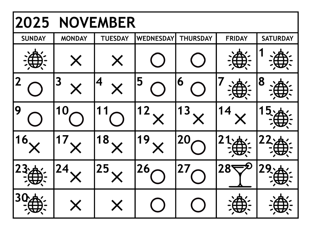 2025年 11月の営業予定日です。
